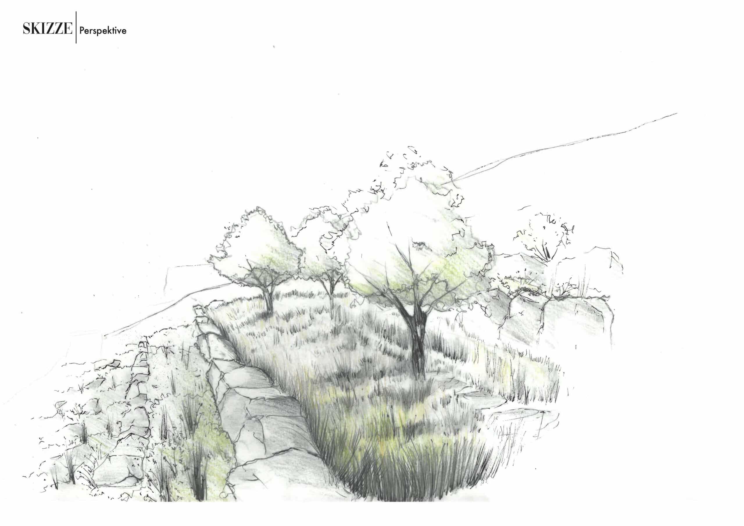 Auf der unteren Terrassenebene wurde eine Fläche für Obstgehölze angelegt. Die von uns gepflanzten Apfel-, Birnen-, Pflaumen- und Kirschbäume wurden – ebenso wie die Stauden – gezielt nach ihrer Robustheit ausgewählt. Durch den Anschluss an das Bewässerungssystem werden die Bäume jederzeit optimal versorgt. So erfreuen sie im Frühjahr mit ihrer üppigen Blütenpracht und verwöhnen im Sommer und Herbst zusätzlich mit aromatischen Früchten.