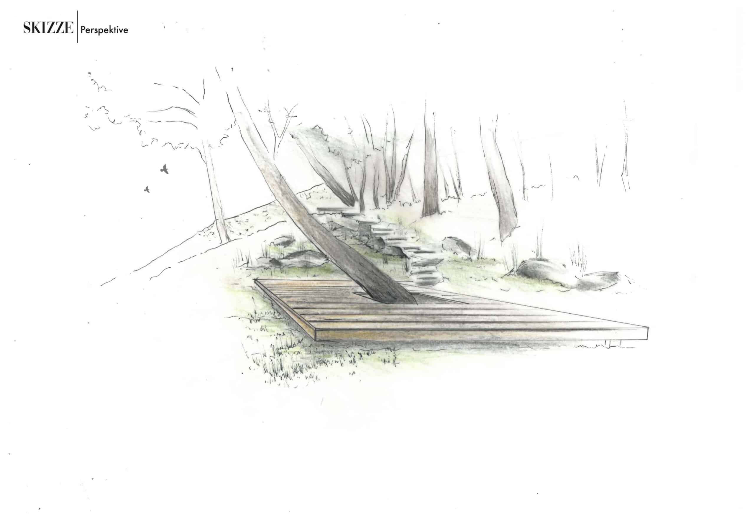 Im zweiten Bauabschnitt, der sich derzeit noch in der Umsetzung befindet, entstehen auf der obersten Terrassenebene eine heimelige Holzterrasse, eine rustikale Natursteinsitzecke sowie ein Brennholzlager und ein Gewächshaus.